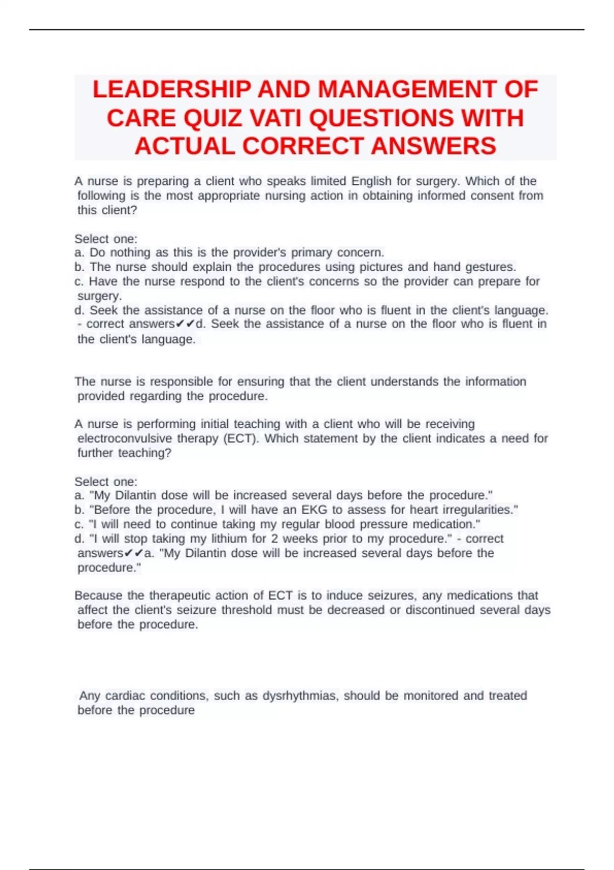 c- ccorrect canswers✔✔d. cSeek cthe cassistance cof ca cnurse con cthe cfloor cwho cis cfluent cin