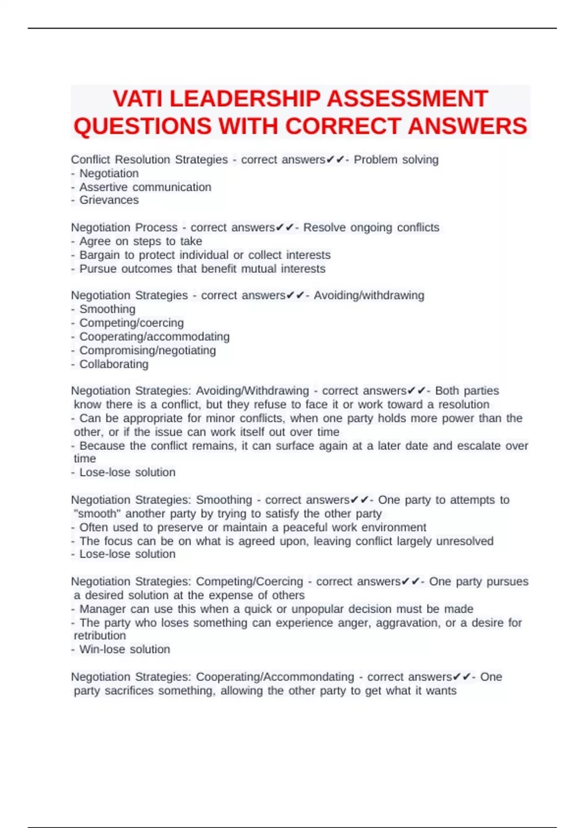 Negotiation cStrategies c- ccorrect canswers✔✔- cAvoiding/withdrawing