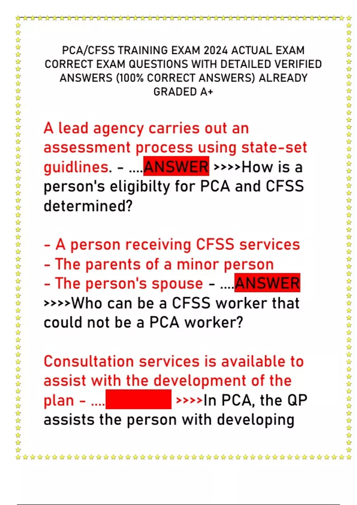 PCA/CFSS TRAINING EXAM 2024 ACTUAL EXAM