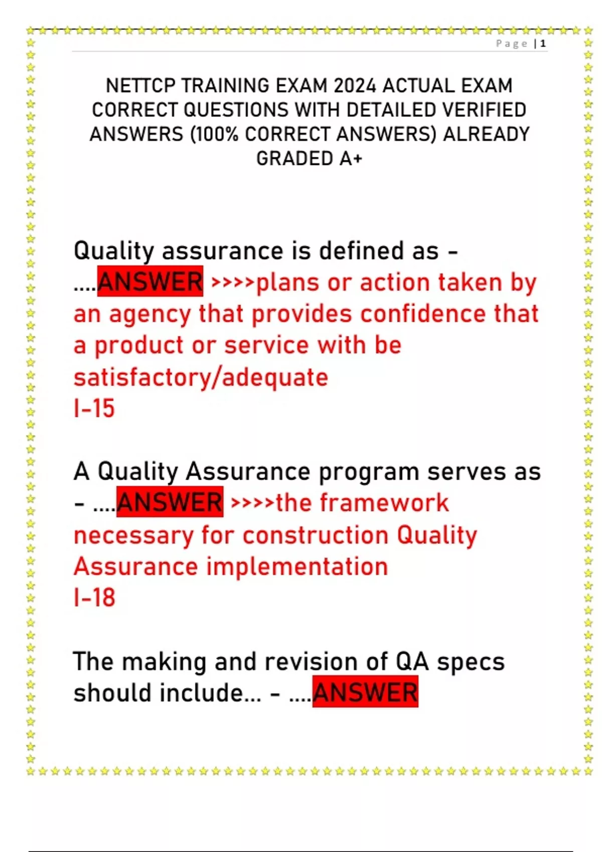 NETTCP TRAINING EXAM 2024 ACTUAL EXAM CORRECT QUESTIONS WITH DETAILED VERIFIED ANSWERS (100% CORRECT ANSWERS) ALREADY GRADED A+