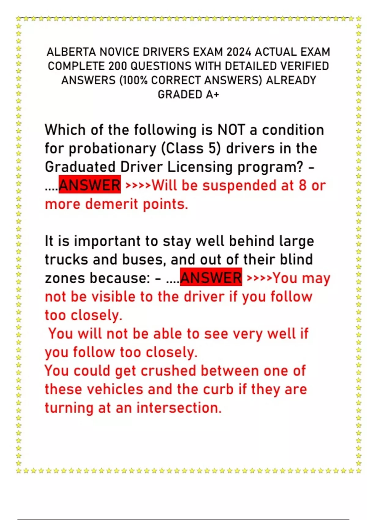 ALBERTA NOVICE DRIVERS EXAM 2024 ACTUAL EXAM