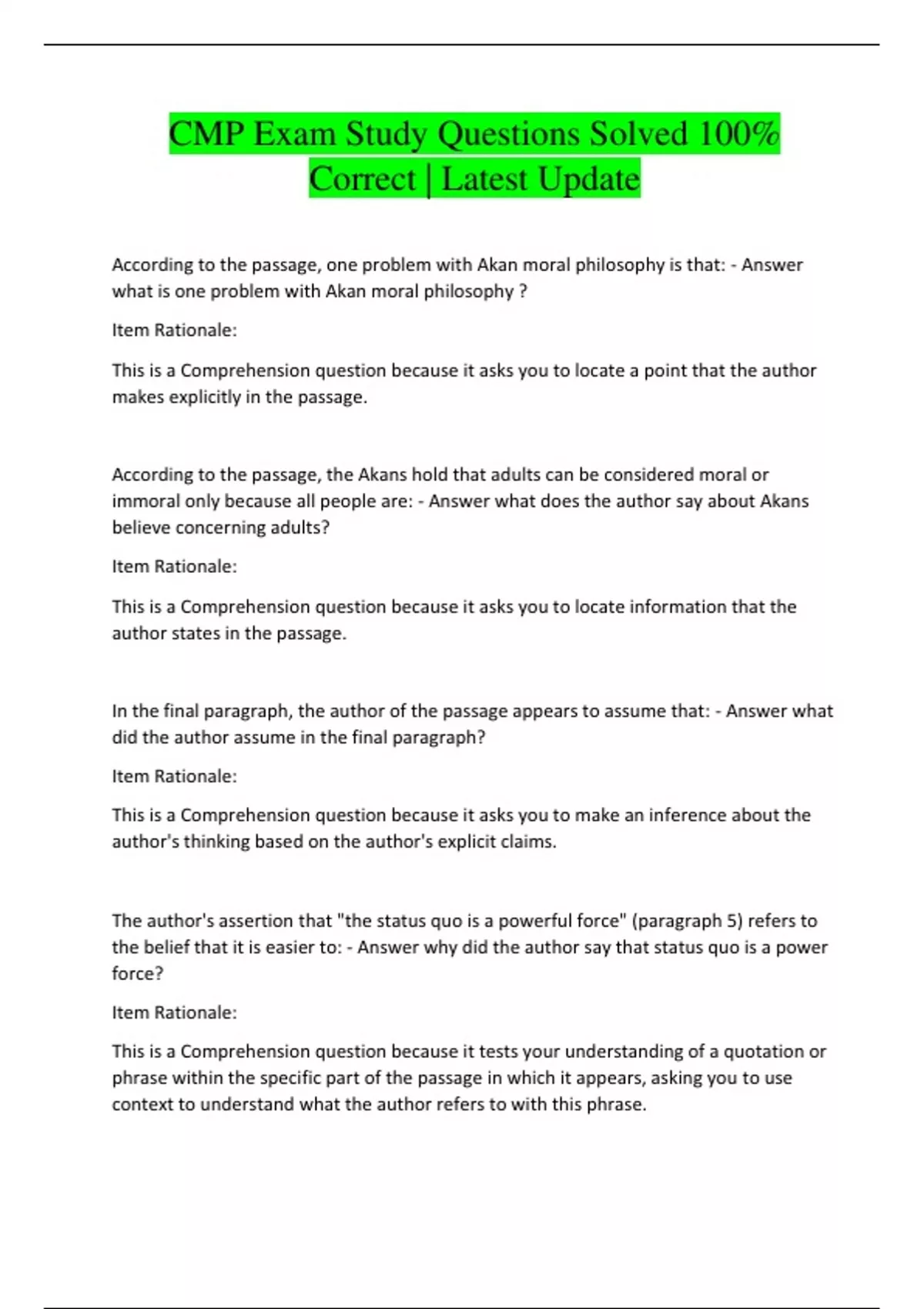 This is a Comprehension question because it asks you to make inferences about the