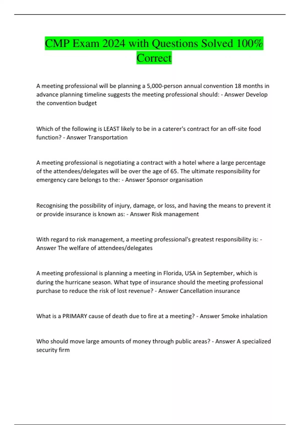 CMP Exam 2024 with Questions Solved 100%