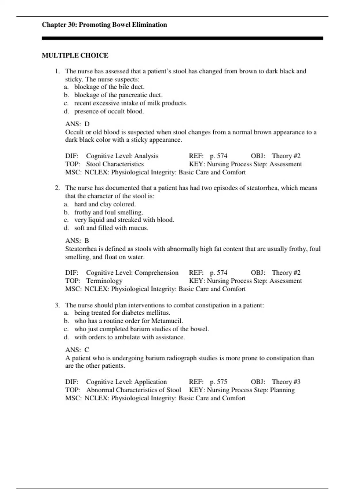 TOP: Stool Characteristics KEY: Nursing Process Step: Assessment
