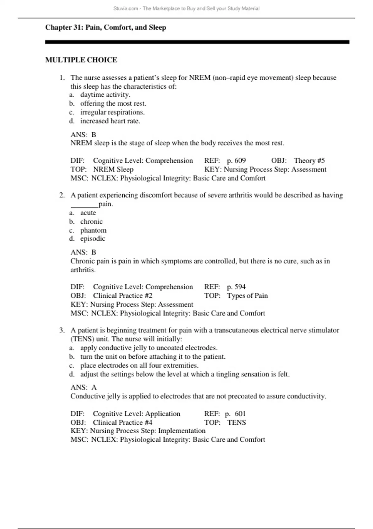 Chapter 31: Pain, Comfort, and Sleep