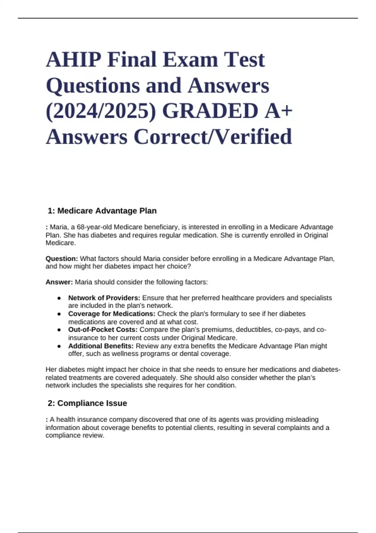 AHIP Final Exam Test Questions and Answers (2024/2025) GRADED A+ Answers Correct/Verified