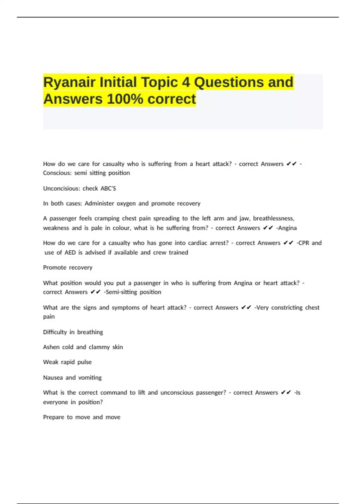 Ryanair Initial Topic 4 Questions and Answers 100% correct.