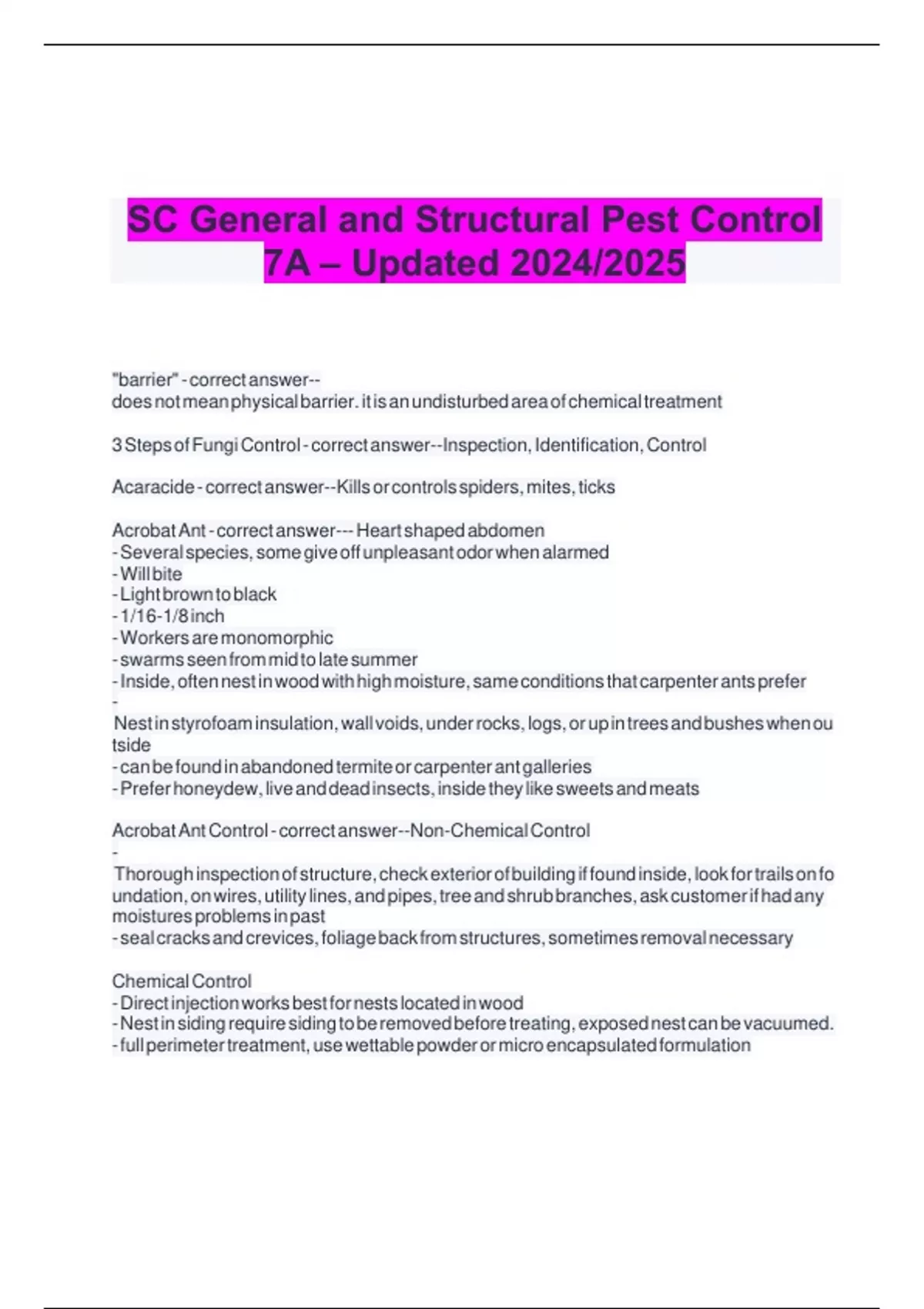 SC General and Structural Pest Control 7A – Updated 2024/2025