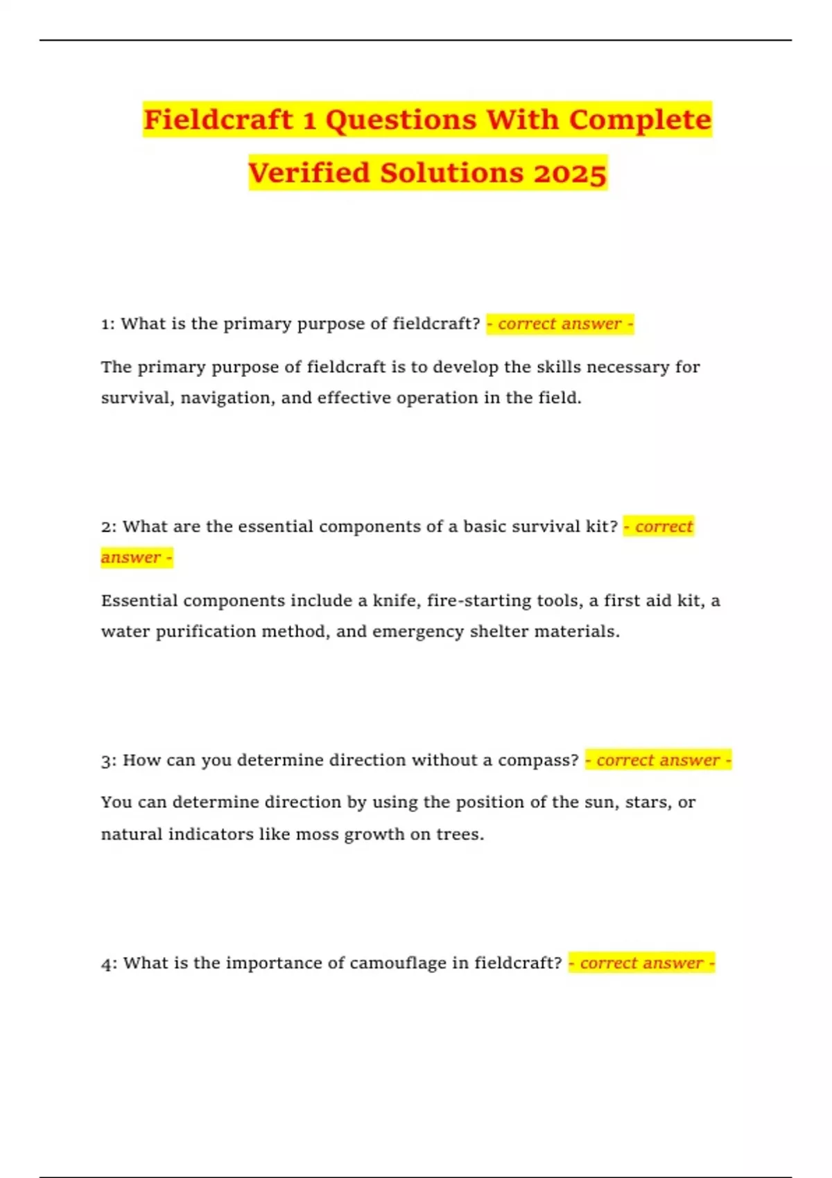 1: What is the primary purpose of fieldcraft? - correct answer -