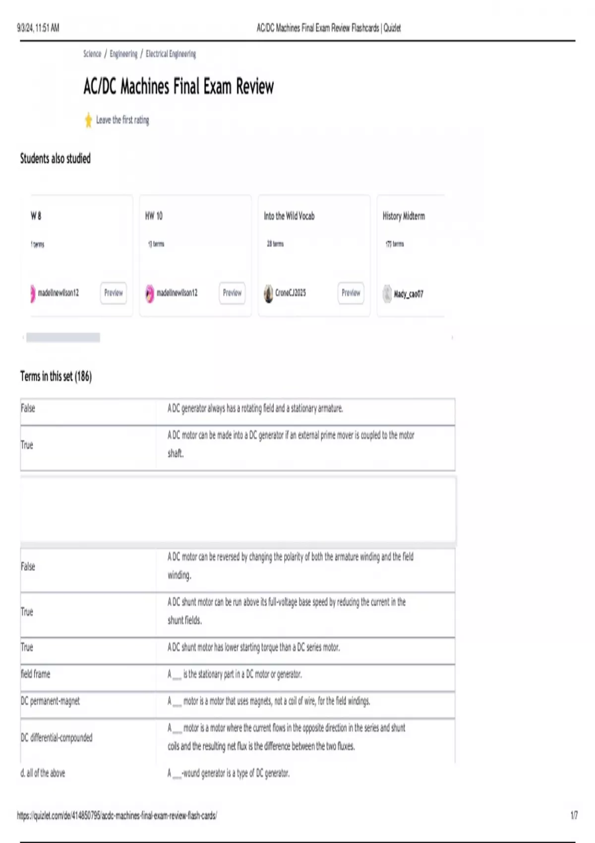 , 9/3/24, 11:51 AM AC/DC Machines Final Exam Review Flashcards | Quizlet