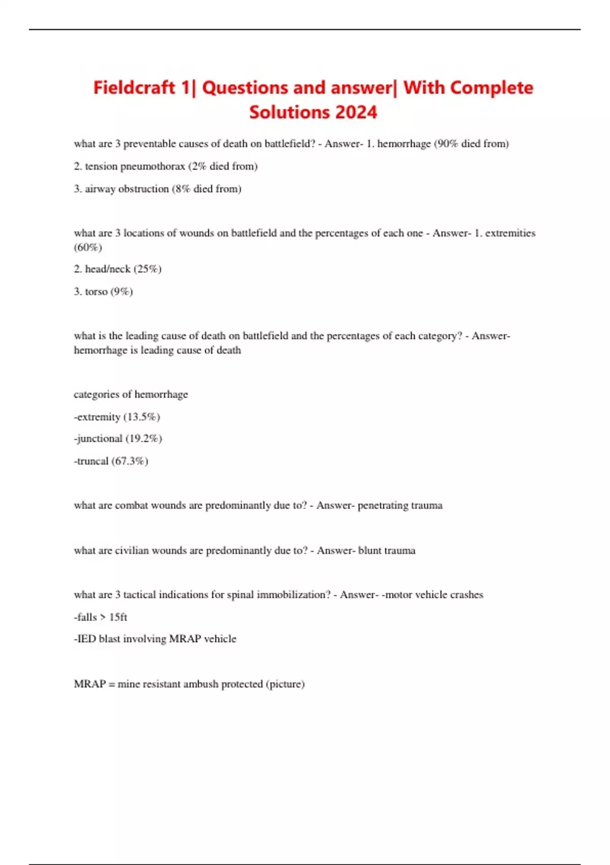 what are 3 preventable causes of death on battlefield? - Answer- 1. hemorrhage (90% died from)