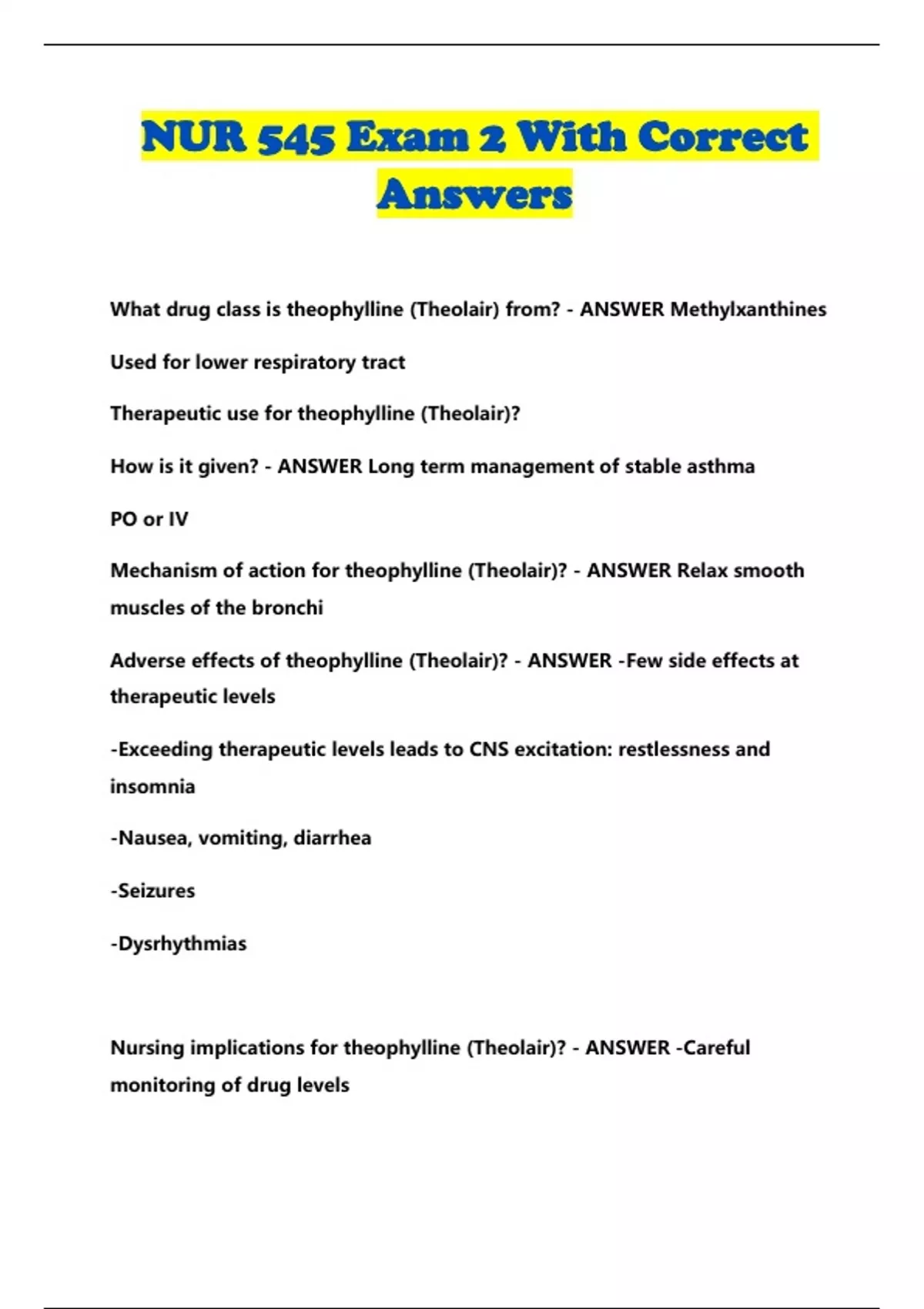 Adverse effects of theophylline (Theolair)? - ANSWER -Few side effects at