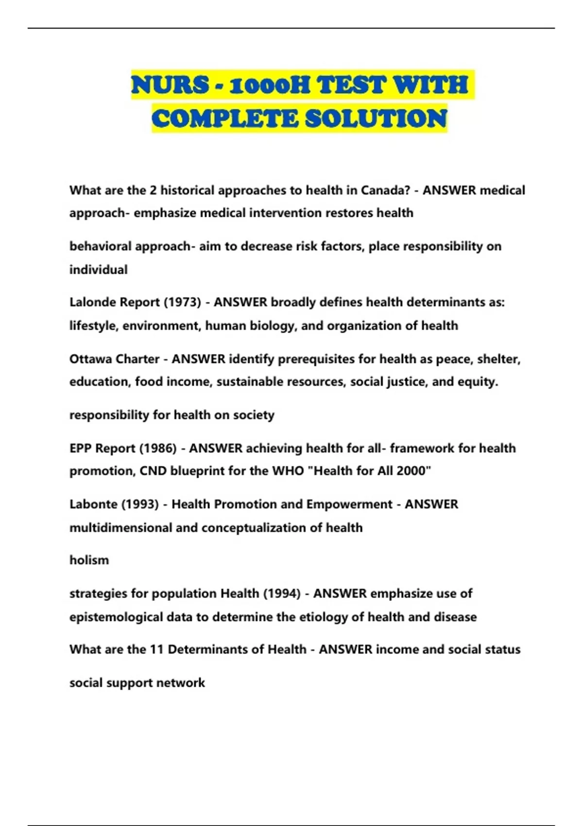 NURS - 1000H TEST WITH