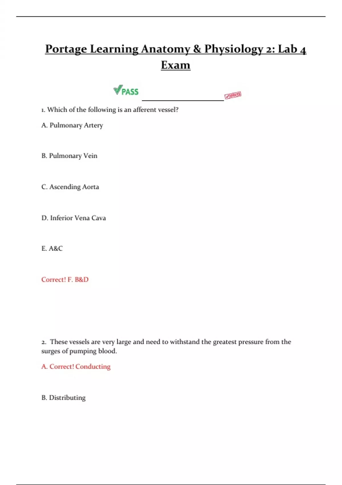Portage Learning Anatomy & Physiology 2: Lab 4 Exam