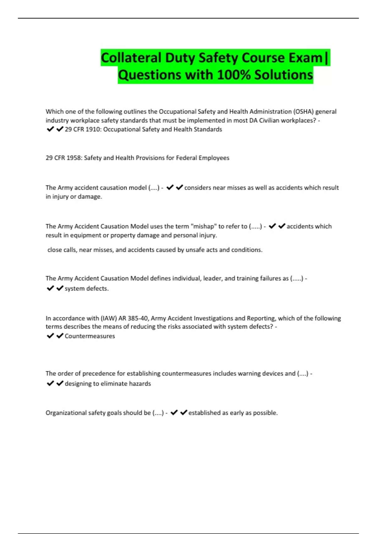 The Army accident causation model (....) - ✔✔considers near misses as well as accidents which result