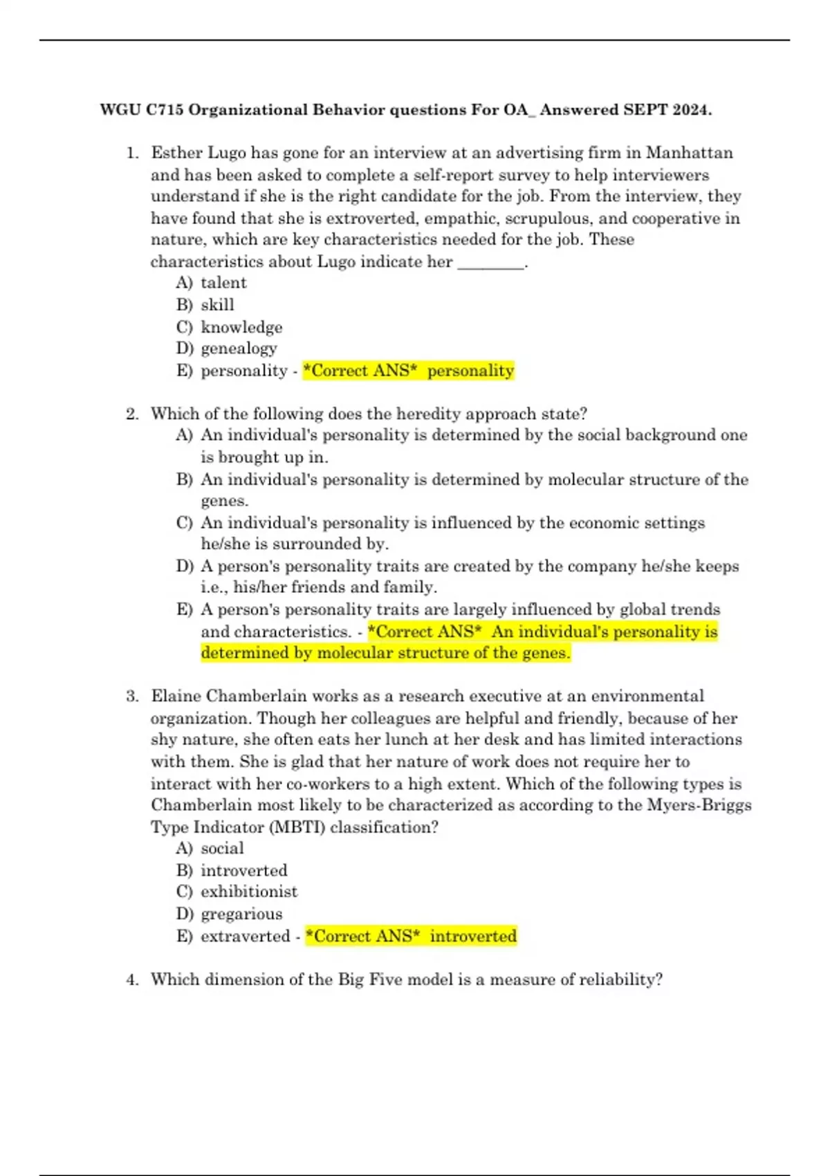 and characteristics. - *Correct ANS* An individual's personality is