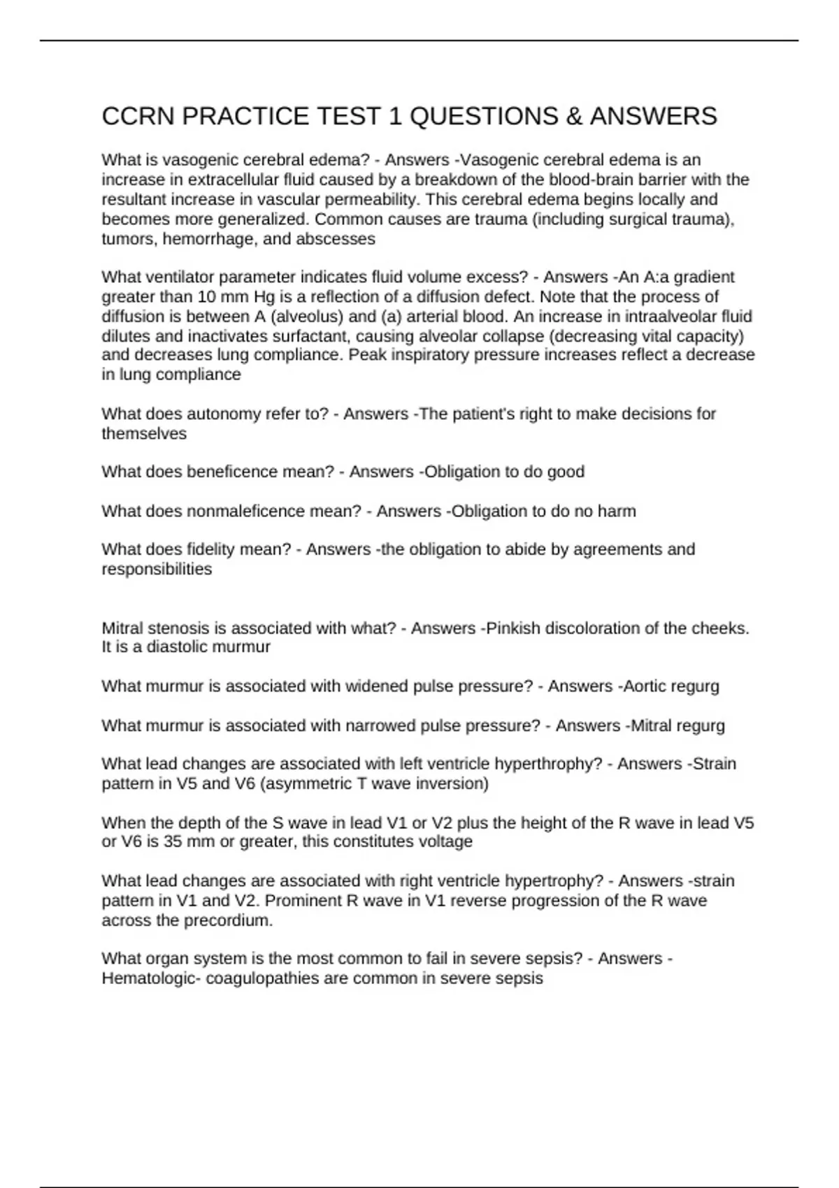 CCRN PRACTICE TEST 1 QUESTIONS & ANSWERS