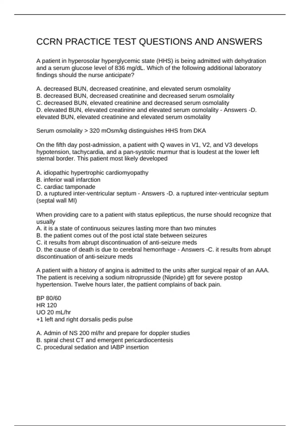 CCRN PRACTICE TEST QUESTIONS AND ANSWERS