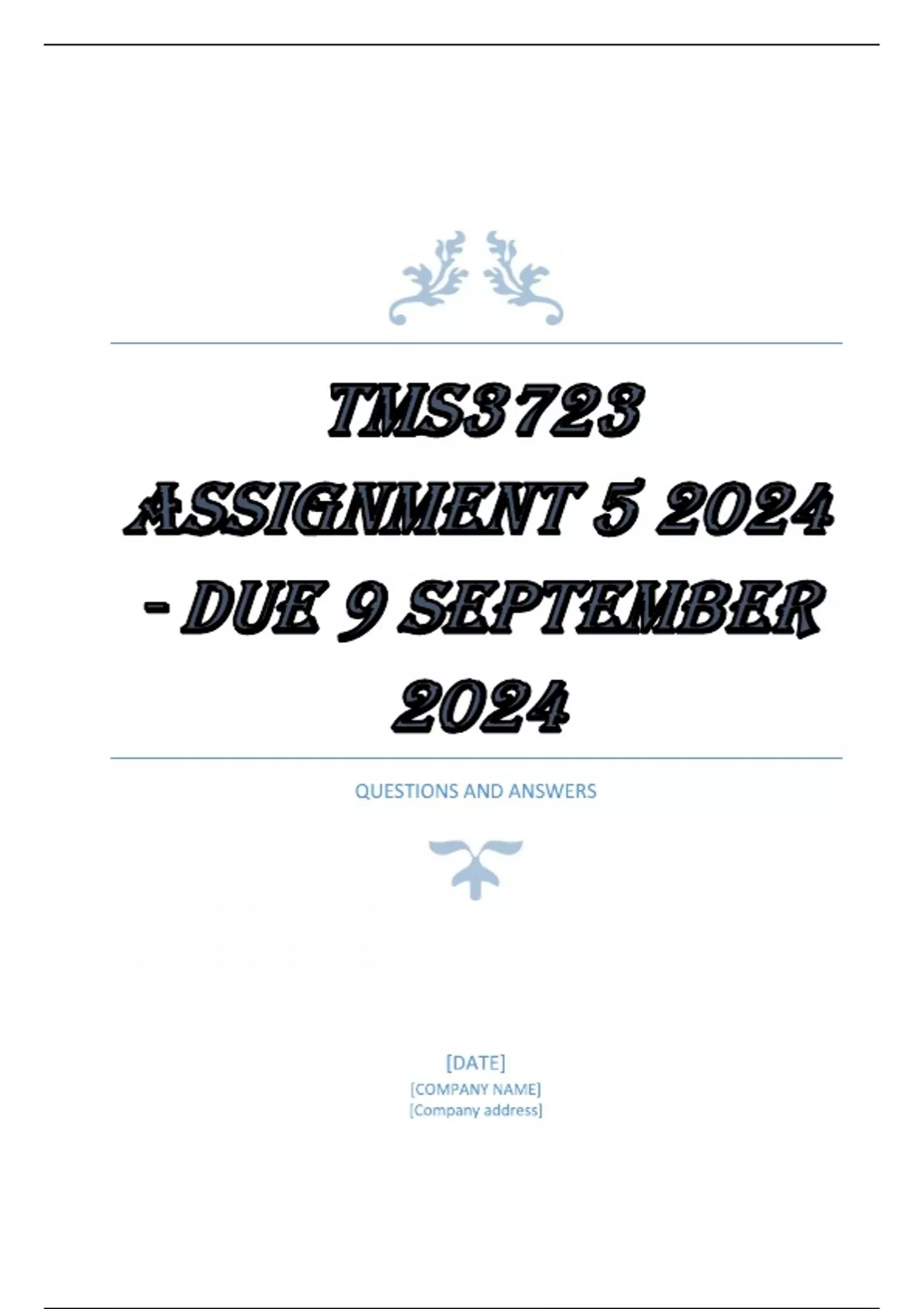 TMS3723 Assignment 5 2024 - DUE 9 September 2024