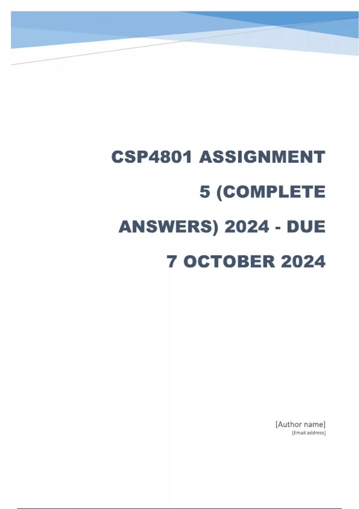 CSP4801 Assignment 5 2024 - DUE 7 October 2024