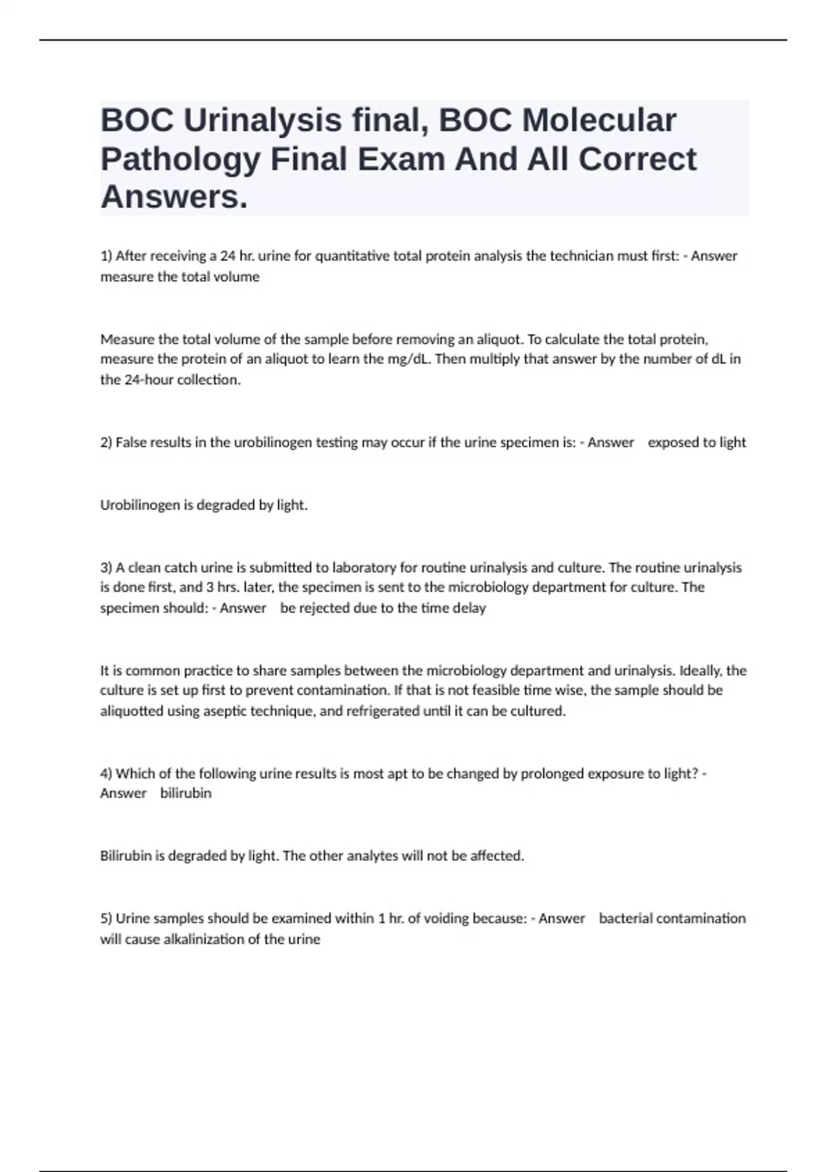 2) False results in the urobilinogen testing may occur if the urine specimen is: - Answer exposed to light