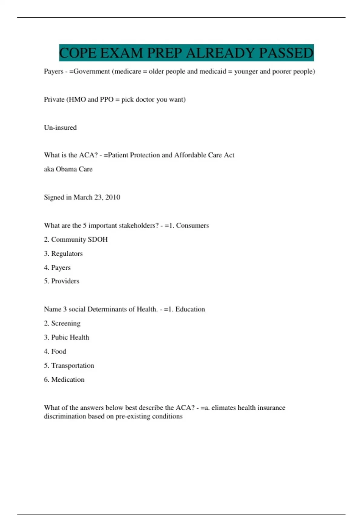 What of the answers below best describe the ACA? - =a. elimates health insurance