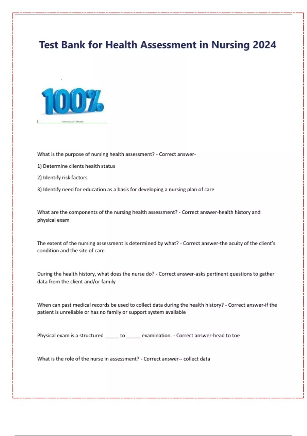 During the health history, what does the nurse do? - Correct answer-asks pertinent questions to gather