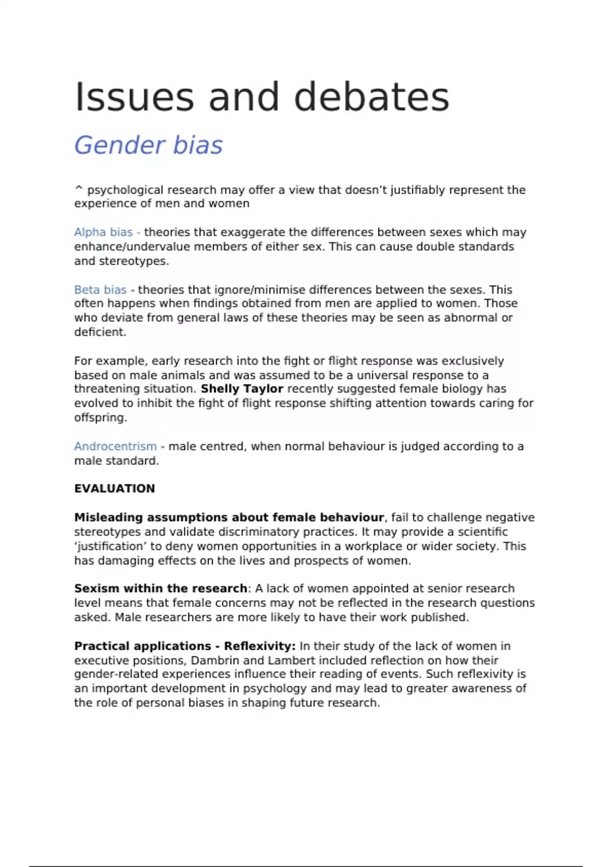 Beta bias - theories that ignore/minimise differences between the sexes. This