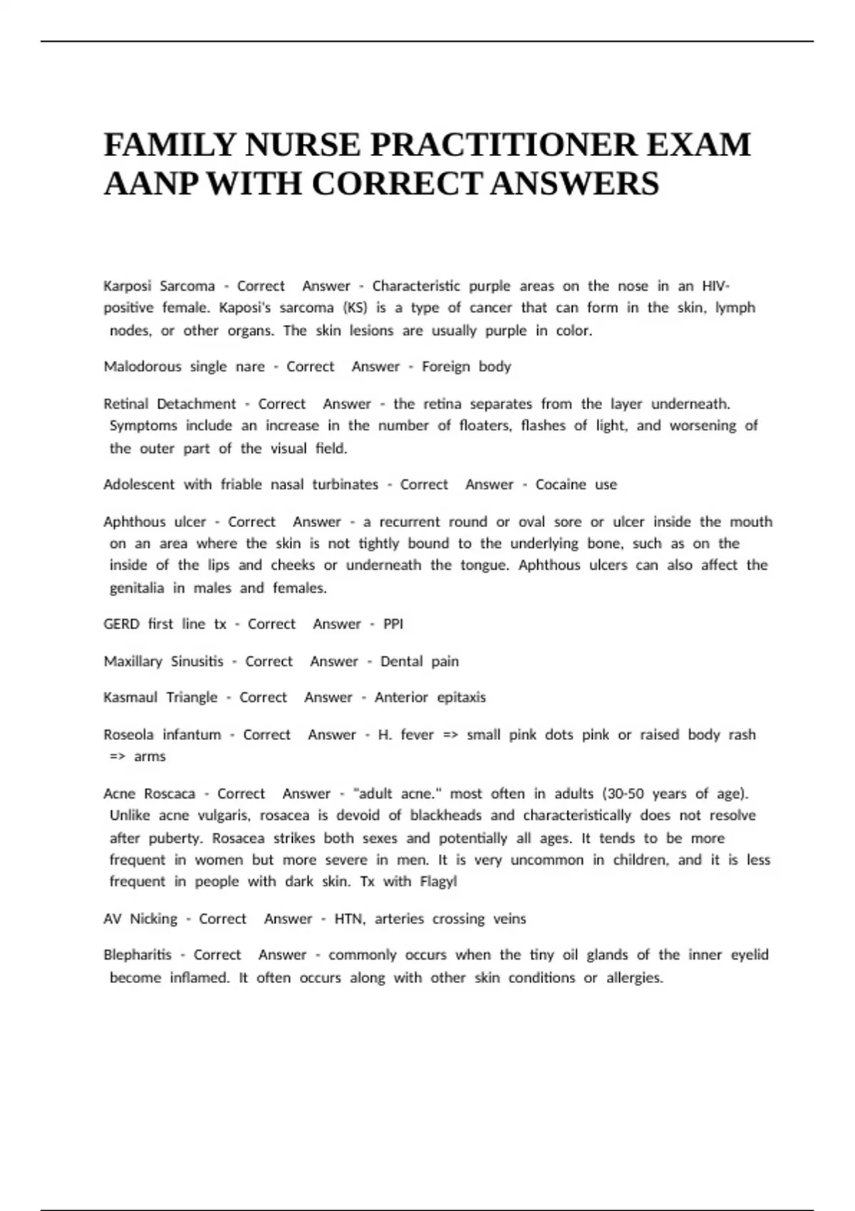 FAMILY NURSE PRACTITIONER EXAM AANP WITH CORRECT ANSWERS.FAMILY NURSE PRACTITIONER EXAM AANP WITH CORRECT ANSWERS.FAMILY NURSE PRACTITIONER EXAM AANP WITH CORRECT ANSWERS.FAMILY NURSE PRACTITIONER EXAM AANP WITH CORRECT ANSWERS.