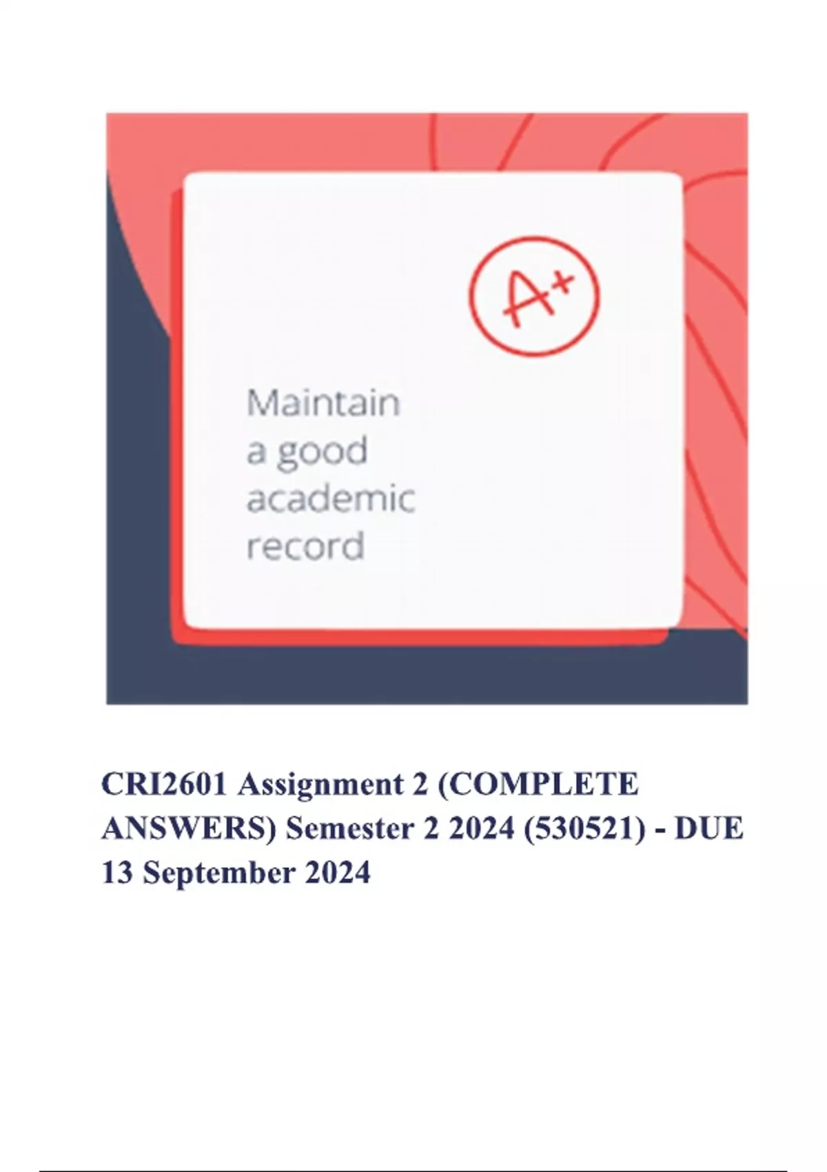 CRI2601 Assignment 2 (COMPLETE ANSWERS)... - DUE 13 September 2024.