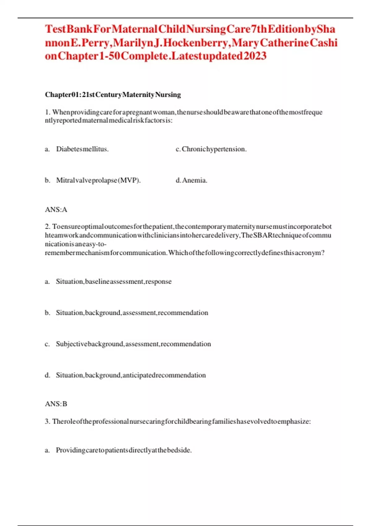 , Test Bank For Maternal Child Nursing Care 7th Edition bySha