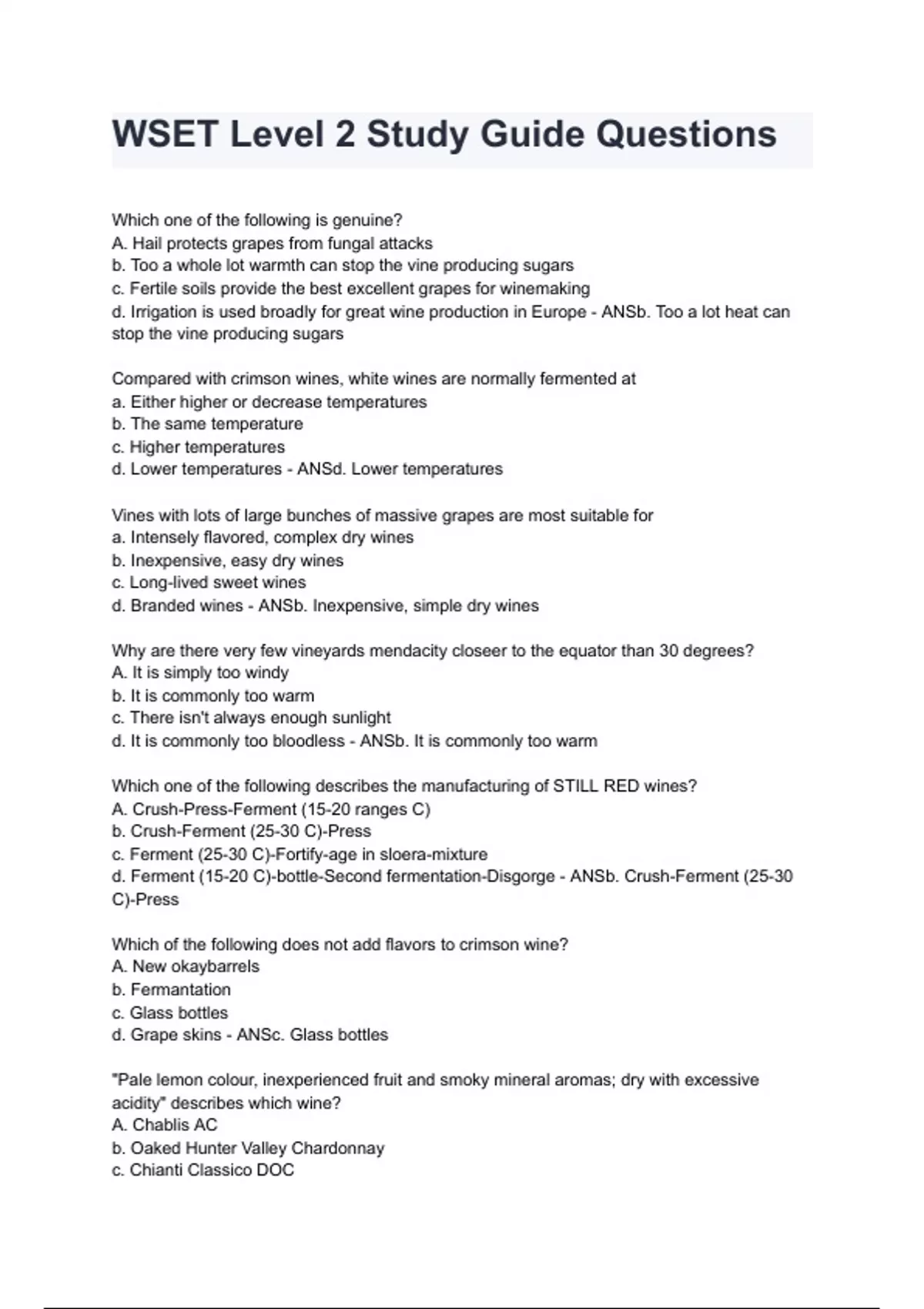 WSET Level 2 Study Guide QUESTIONS AND CORRECT DETAILED ANSWERS |ALREADY GRADED A+ 2024/2025