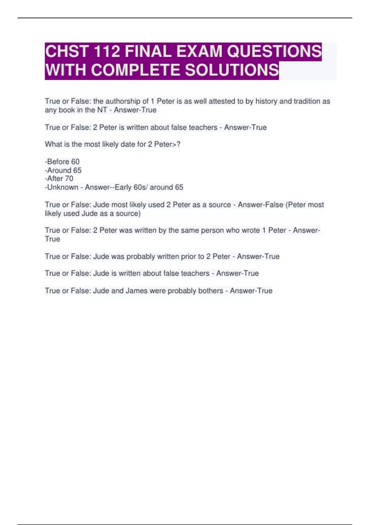 True or False: Jude was probably written prior to 2 Peter - Answer-True