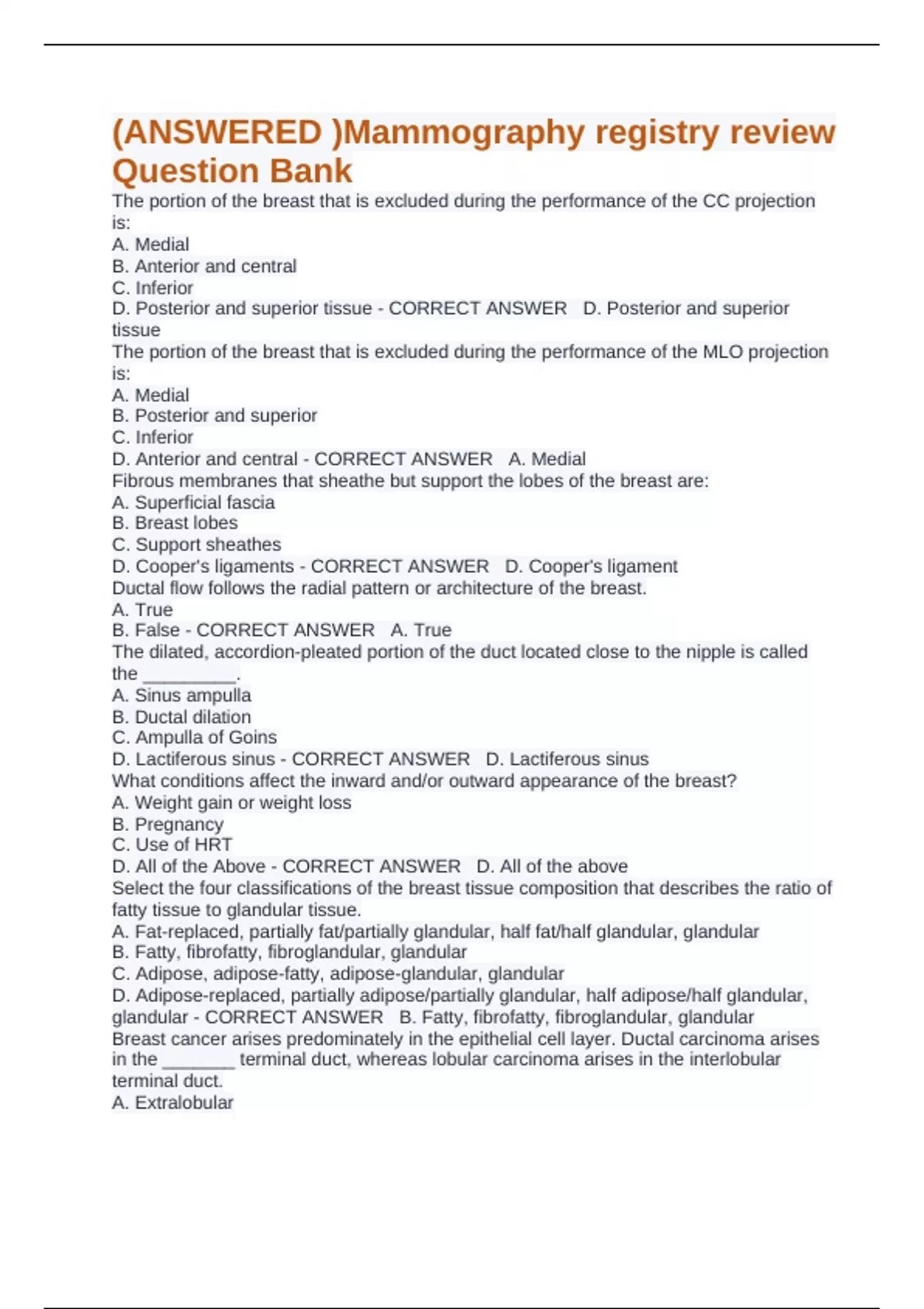 glandular - CORRECT ANSWER B. Fatty, fibrofatty, fibroglandular, glandular