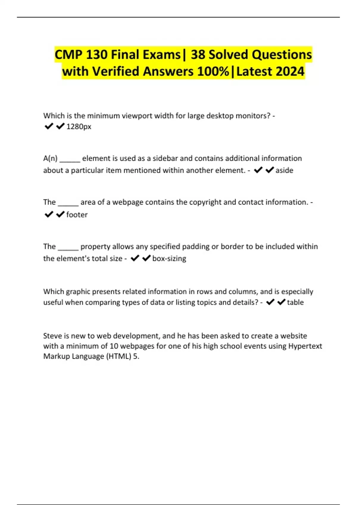 CMP 130 Final Exams| 38 Solved Questions with Verified Answers 100%|Latest 2024