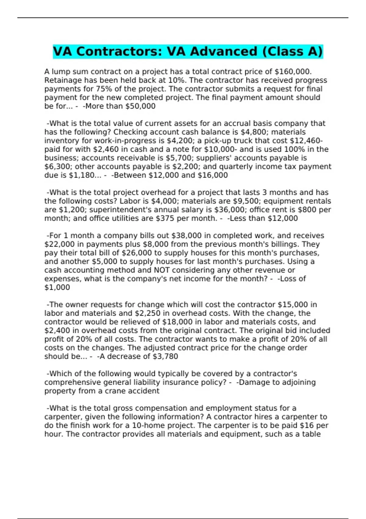 VA Contractors: VA Advanced (Class A)