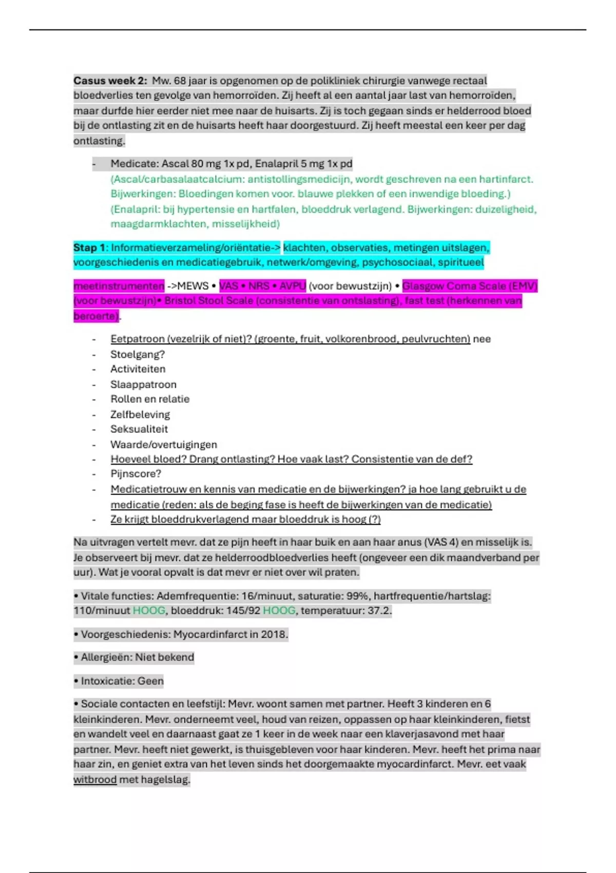 Casus week 2: Mw. 68 jaar is opgenomen op de polikliniek chirurgie vanwege rectaal