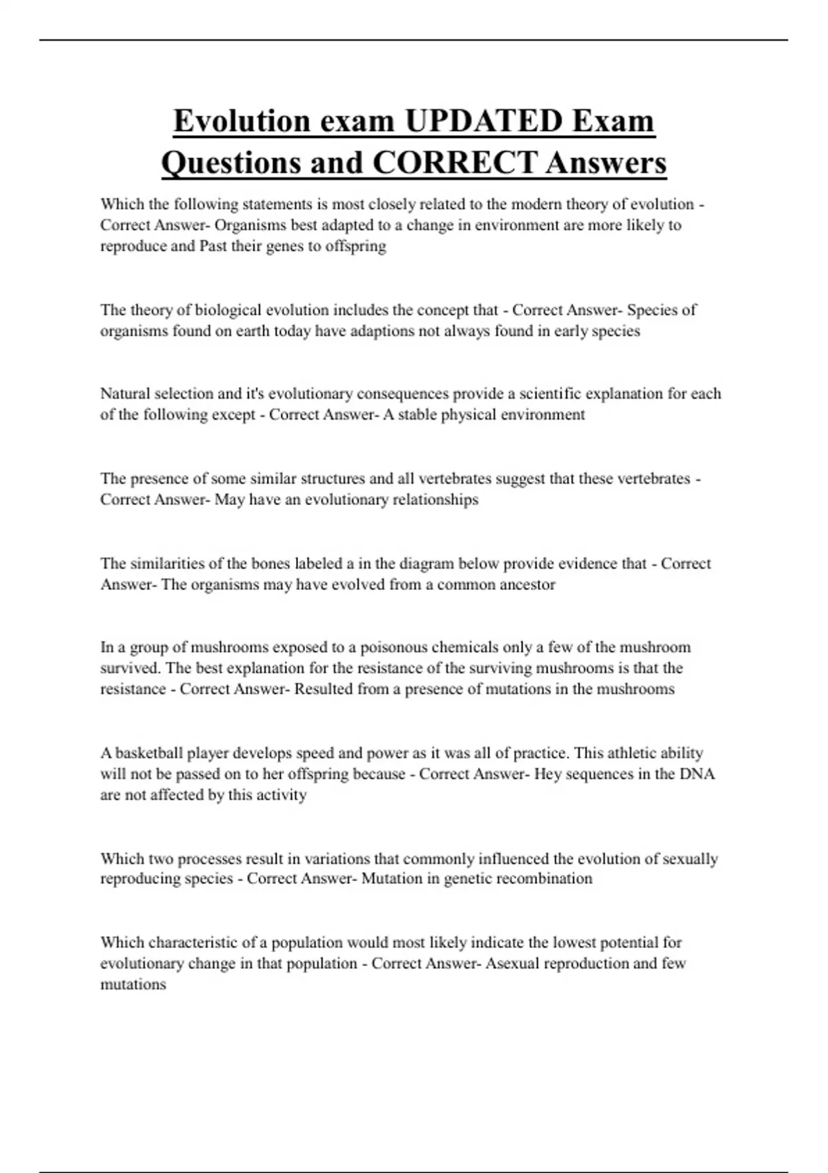 Evolution exam UPDATED Exam Questions and CORRECT Answers