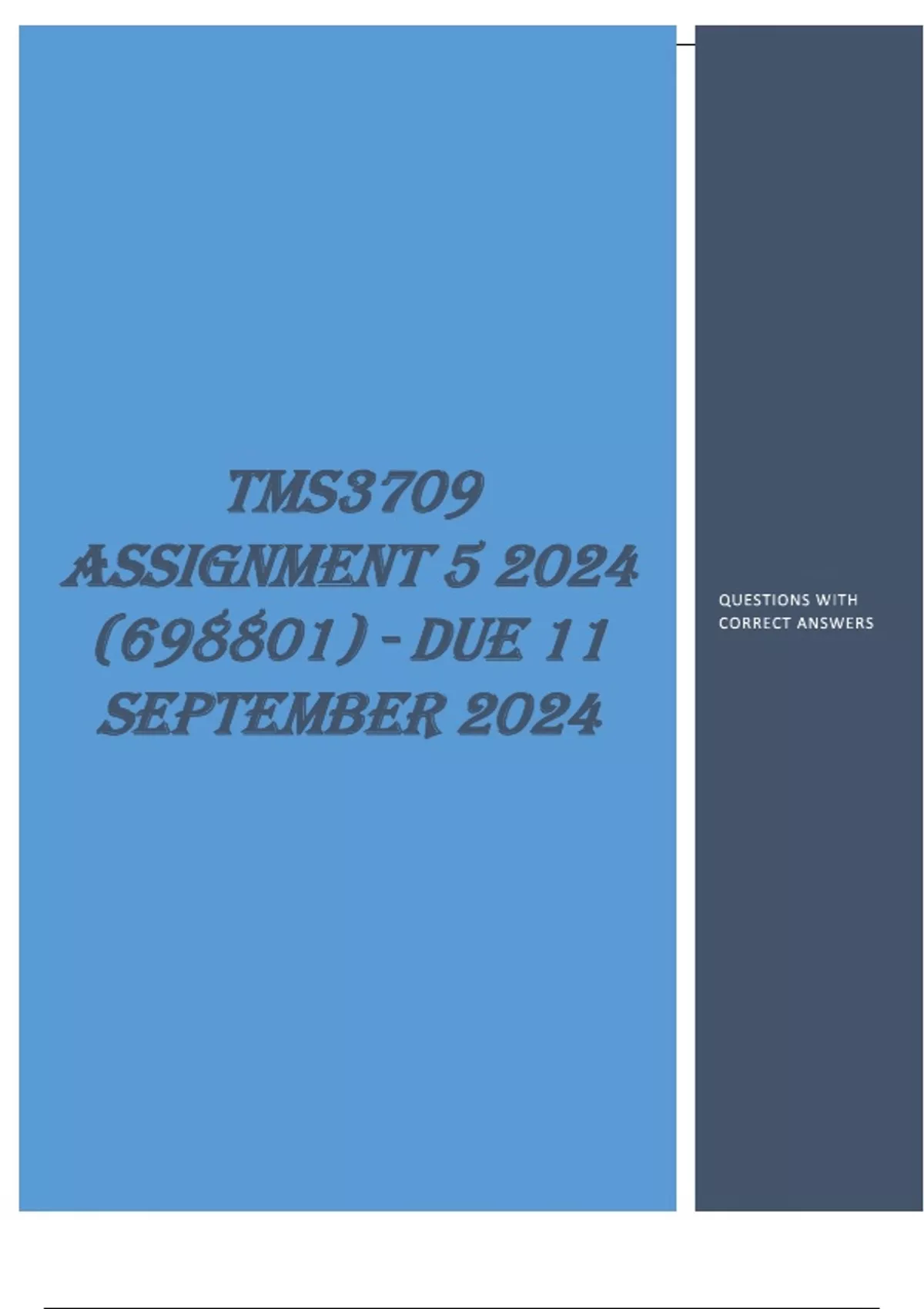 TMS3709 Assignment 5 (COMPLETE QUESTIONS & ANSWERS) 2024 (698801)