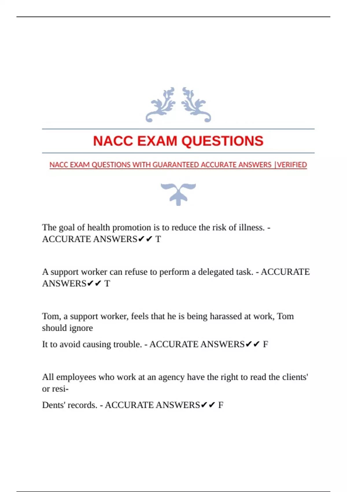 NACC EXAM QUESTIONS WITH GUARANTEED ACCURATE ANSWERS |VERIFIED