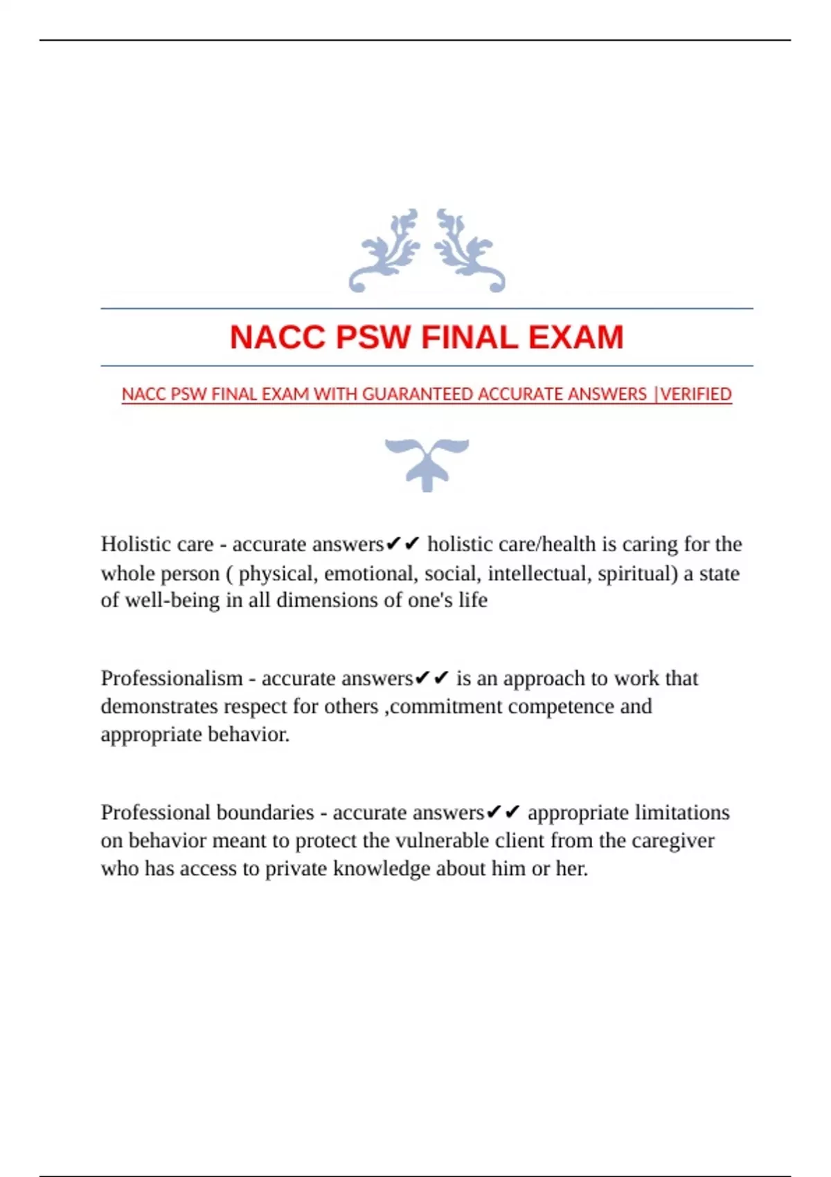 NACC PSW FINAL EXAM WITH GUARANTEED ACCURATE ANSWERS |VERIFIED