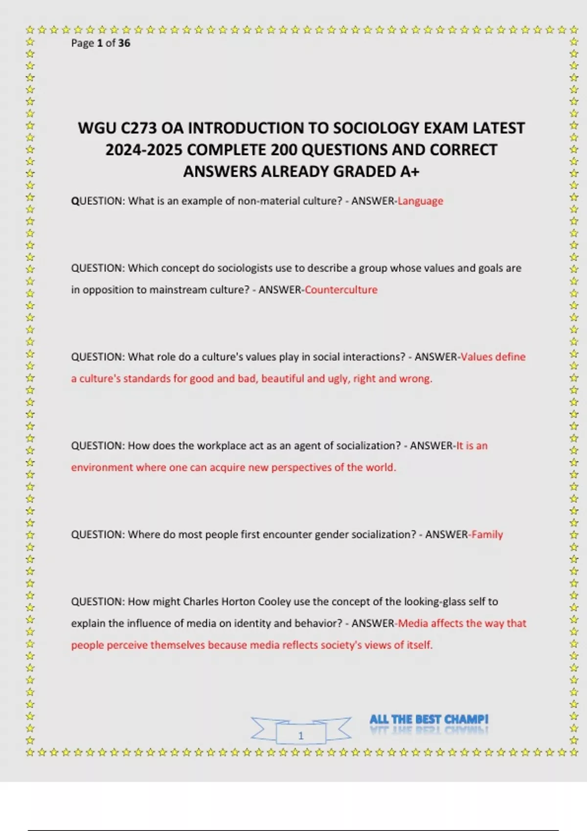WGU C273 OA INTRODUCTION TO SOCIOLOGY EXAM LATEST