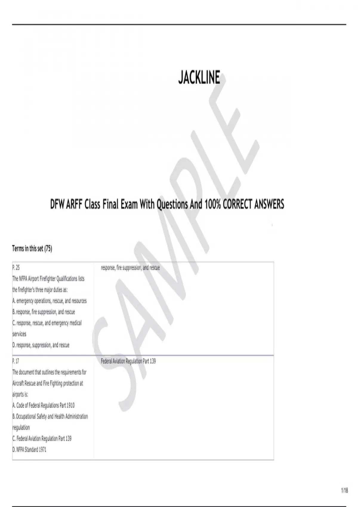 DFW ARFF Class Final Exam With Questions And 100% CORRECT ANSWERS
