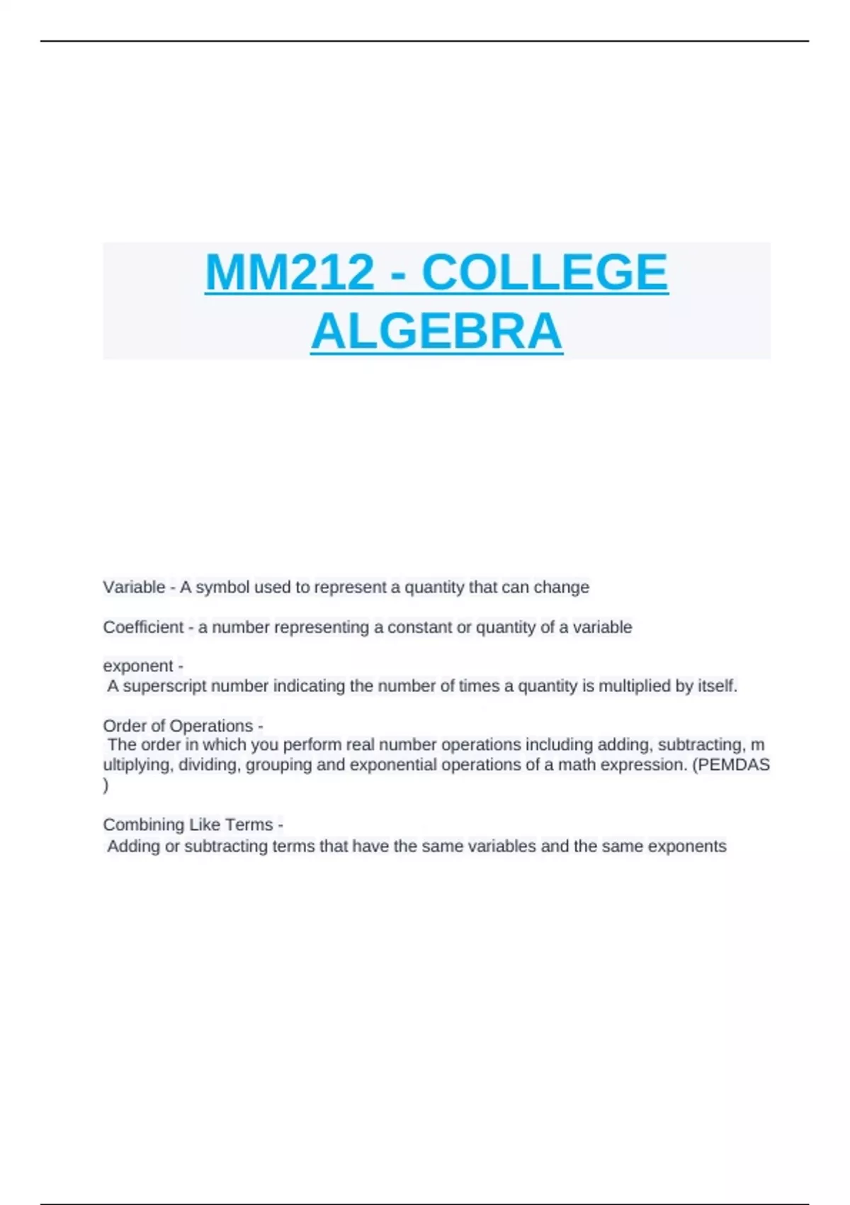 MM212 - COLLEGE ALGEBRA