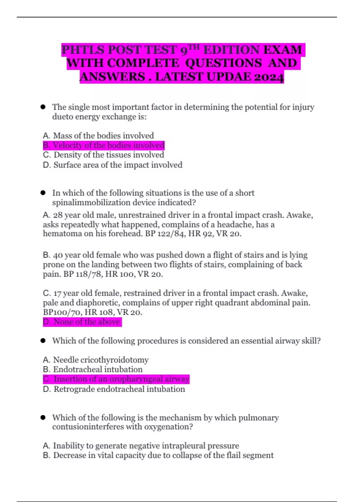 ANSWERS . LATEST UPDAE 2024