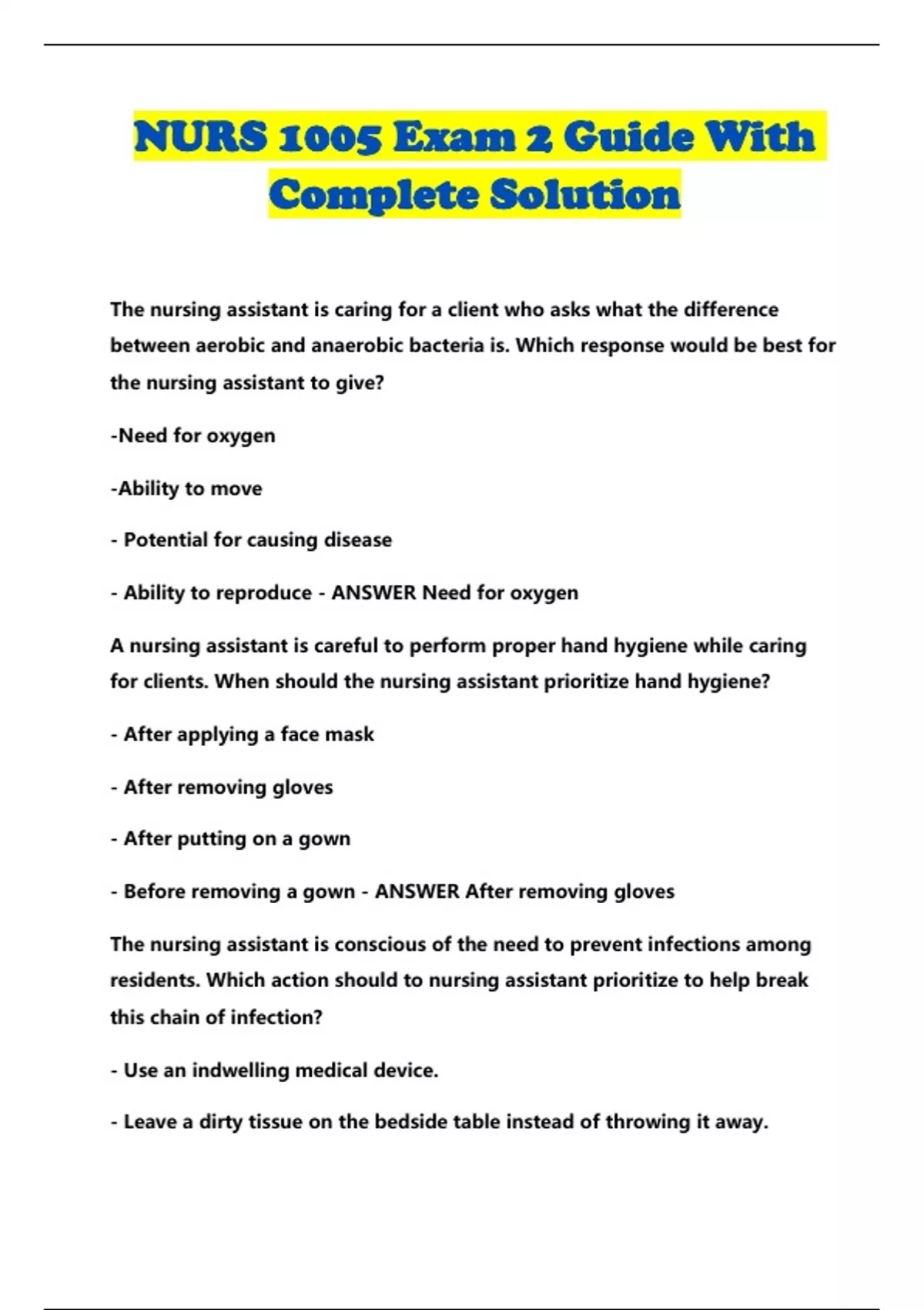 NURS 1005 Exam 2 Guide With Complete Solution...
