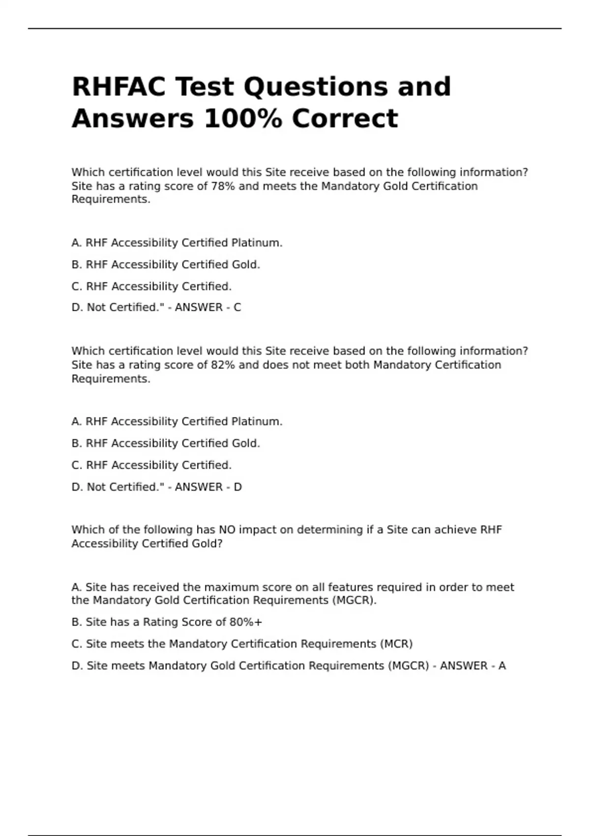 D. Site meets Mandatory Gold Certification Requirements (MGCR) - ANSWER - A