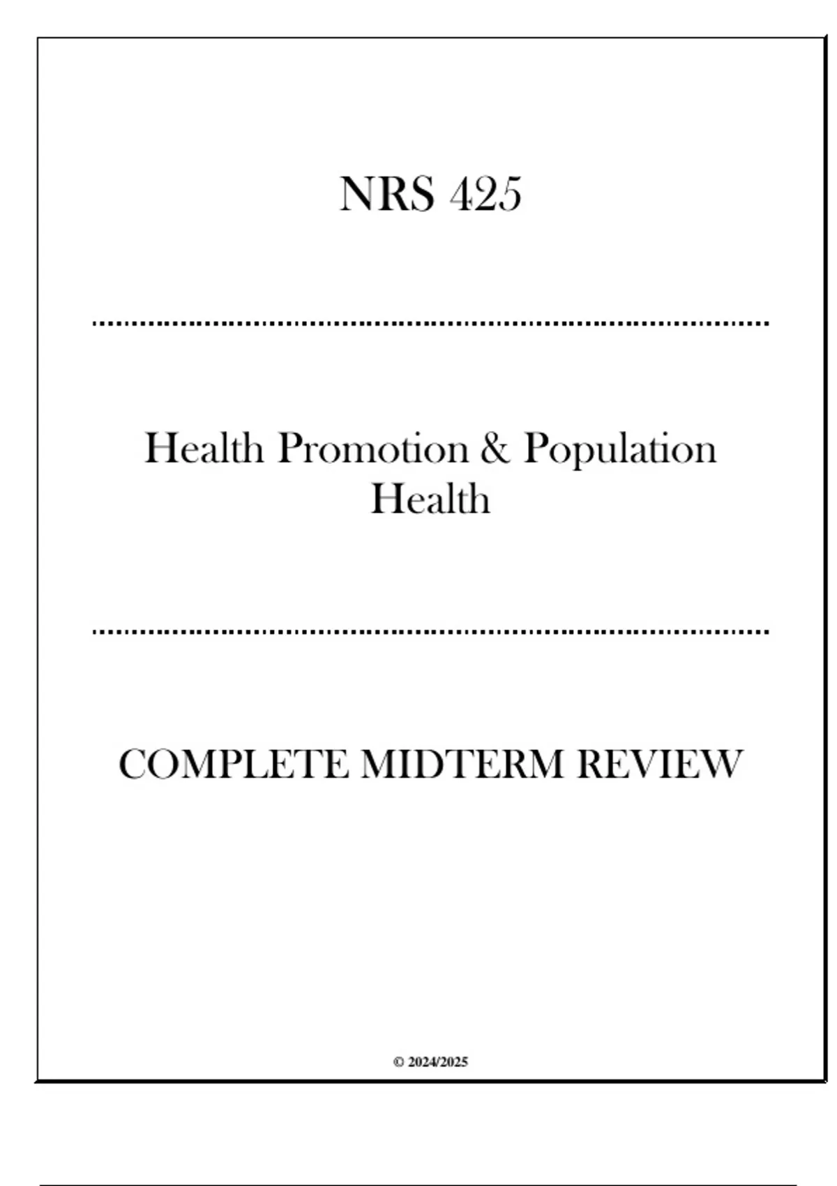 (GCU) NRS 425 - Health Promotion & Population Health - Complete Midterm Review (GCU) NRS 425 - Health Promotion & Population Health - Complete Midterm Review (GCU) NRS 425 - Health Promotion & Population Health - Complete Midterm Review (GCU) NRS 425 - Health Promotion & Population Health - Complete Midterm Review