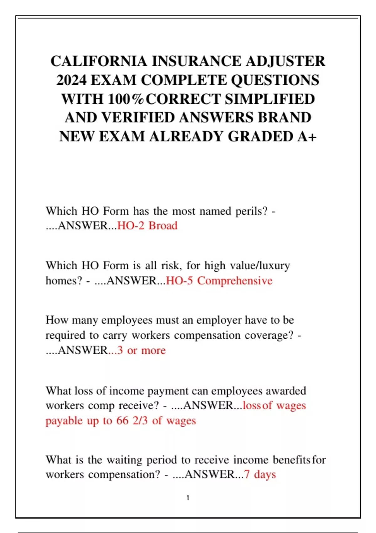 CALIFORNIA INSURANCE ADJUSTER 2024 EXAM COMPLETE QUESTIONS WITH 100%CORRECT SIMPLIFIED AND VERIFIED ANSWERS BRAND NEW EXAM ALREADY GRADED A+