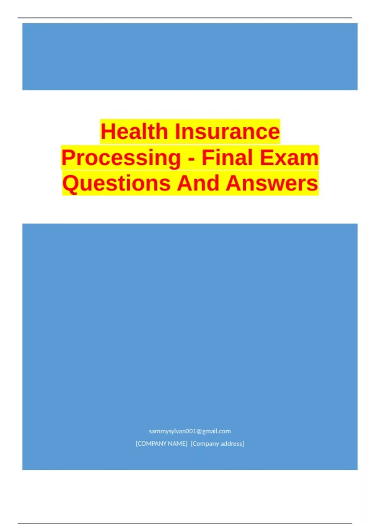 , Health Insurance Processing - Final